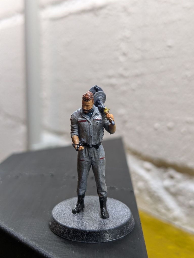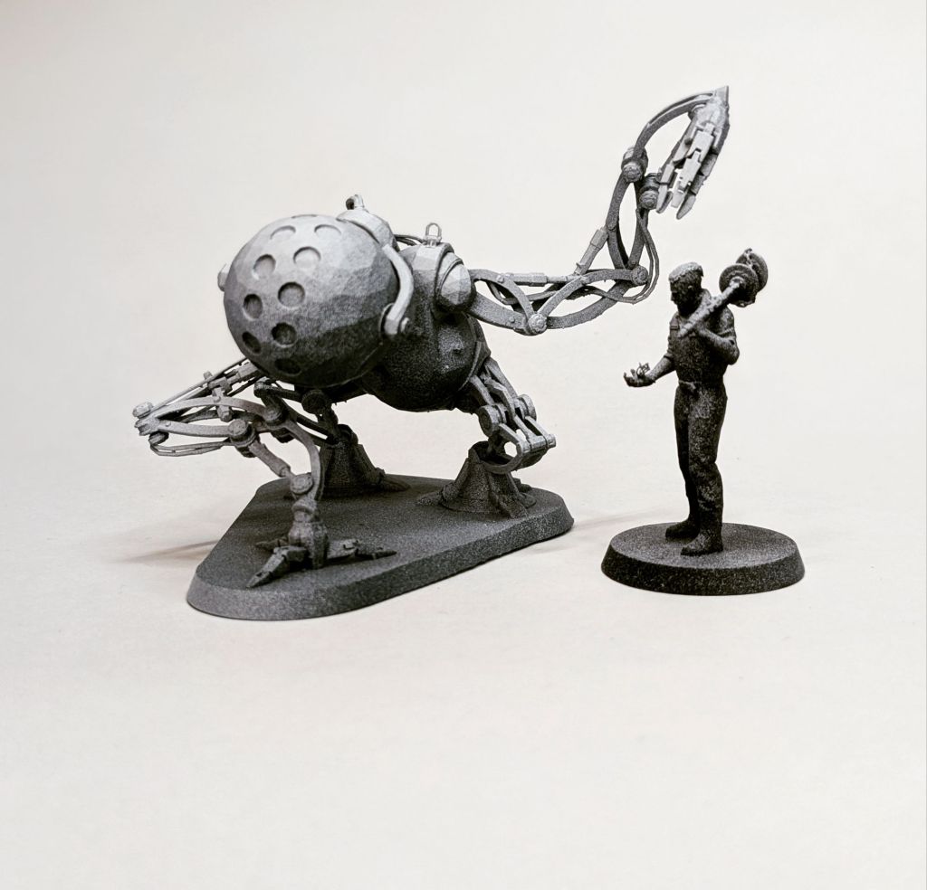 Der Druck musste mehrere Male wiederholt werden, da die Ärmchen/Tentakeln von Charles es beim ersten Mal nicht geschafft hat. Außerdem wurde nach Begutachtung des ersten Druckes, Sägeblätter und ähnlich kleine und dünne Teile verstärkt …